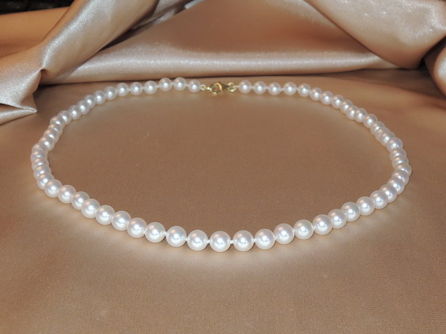 Náhrdelník vyrobený z japonských bielych morských akoya perál veľkosti 6-6,5 mm a uzáveru zo zlata. Perly najvyššej kvality AAA sú dokonale guľaté a majú nádherný vysoký lesk a hladký povrch. Medzi každou perlou sú naviazané uzlíky kvôli krajšiemu vzhľadu a bezpečnosti, navlečené sú na pevnej hodvábnej niti. Náhrdelník je možné vyrobiť v rôznych dĺžkach s primeraným zvýšením, alebo znížením ceny. Náhrdelník je ukončený uzáverom zo žltého, alebo bieleho zlata rýdzosti 585/1000 (14kt.). K náhrdelníku dostanete zdarma certifikát pravosti, darčekovú kazetu a v rámci Česka a Slovenska máte dopravu zdarma.