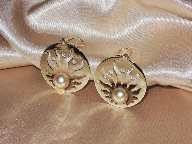 Luxusné perlové náušnice zo setu šperkov BC01YS-G sú kombináciou kovania zo žltého zlata, zirkónov alebo briliantov a zlatožltých juhomorských perál. Perly najvyššej kvality AAA majú okrúhly tvar, hladký povrch a veľmi vysoký lesk. Kovania náušníc sú vyrobené zo žltého zlata rýdzosti 585/1000 (14kt.) kombinované so zirkónmi alebo briliantmi veľkosti cca 2,3 mm/0,05ct. Brilianty sú v kvalite VVS/G,H. Celková hmotnosť zlata páru náušníc je cca 16,5 gramu. Veľkosť kruhov kovaní je cca 35 mm, celková dĺžka náušníc s patentom cca 60 mm. Tieto náušnice sú jeden z luxusných šperkov vlastného designu "BCstyle". Šperky splnia očakávania náročných klientov, ktorí hľadajú najvyššiu kvalitu v spojení s jedinečnosťou šperku, ktorý nemožno vidieť v ponukách iných predajní. Náušnice vám doručíme s certifikátom pravosti v darčekovej krabičke a v rámci Česka a Slovenska máte doručenie zdarma.