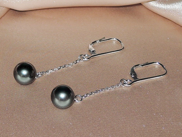 Perlové náušnice vyrobené z pravých tahitských perál a kovaní z bieleho zlata rýdzosti 585/1000 (14kt.). Perly najvyššej kvality AAA majú okrúhly tvar, hladký povrch a veľmi vysoký lesk. Kovania náušníc pozostávajú z patentov a retiazky. Dĺžka náušníc vrátane perál je cca 55 mm, dĺžka retiazky cca 20 mm. Hmotnosť páru zlatých kovaní je cca 1,95 gramu, celková hmotnosť náušníc cca 5 gramu. Veľkosť perál môžete zvoliť od 8 do 12 mm. Na fotografii sú perly veľkosti 9,5 mm. Na požiadanie k náušniciam doporučíme prívesok a prsteň ako kombináciu do setu šperkov. Šperky posielame v darčekovom balení spolu s certifikátom pravosti a v rámci Česka a Slovenska máte dopravu zdarma.