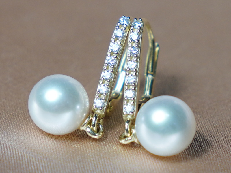Zlaté perlové náušnice BC024YFE-W vyrobené z pravých bielych sladkovodných perál a kovaní zo žltého zlata rýdzosti 585/1000 (14kt.). Perly kvality AAA majú okrúhly tvar, hladký povrch a veľmi vysoký lesk. Kovania náušníc pozostávajú z patentov kombinovaných so zirkónmi. Každá zlatá náušnica má 7 ks zirkónov veľkosti 1,5 mm. Hmotnosť páru kovaní je cca 2,05 gramu. Veľkosť perál môžete zvoliť od 8 do 10 mm. Na fotografii sú sladkovodné perly veľkosti 8 mm. Na požiadanie k zlatým perlovým náušniciam doporučíme zlatý prívesok a zlatý prsteň s perou ako kombináciu do setu šperkov. Perlové šperky posielame v darčekovom balení spolu s certifikátom pravosti a v rámci Česka a Slovenska máte dopravu zdarma.