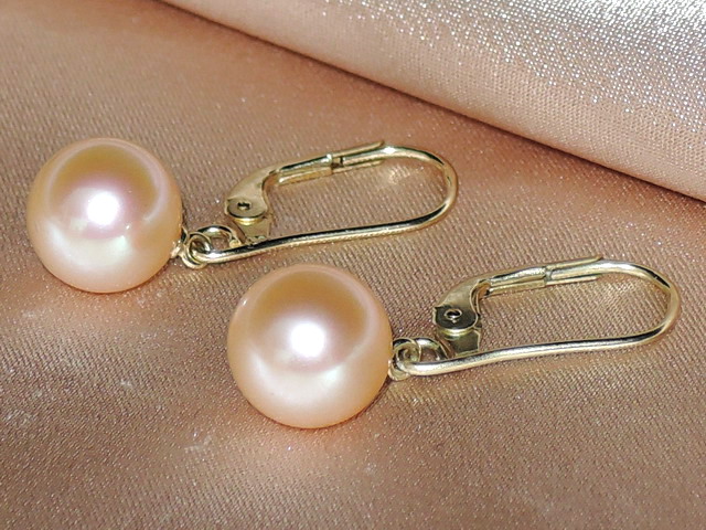 Výnimočné elegantné náušnice z broskyňovoružových sladkovodných perál kvality AAA. Použité sú kovania zo žltého zlata rýdzosti 585/1000 (14kt.) hmotnosti cca 1,6 gramu s uzatváracími patentami. Je možné si vybrať perly veľkosti 8-10 mm. Tento šperk je vhodný k prívesku RPP002pM, s ktorým tvorí nádherný set. Na fotografii sú perly veľkosti 9,5 mm.Šperky posielame v darčekovom balení spolu s certifikátom pravosti.