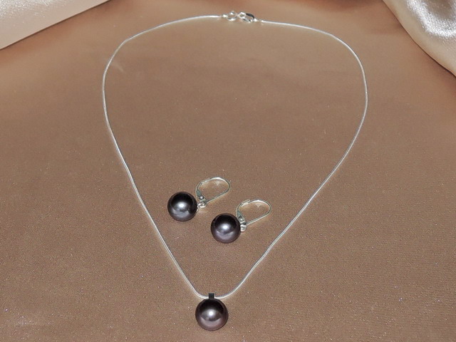 Nádherný jednoduchý a zároveň elegantný set šperkov pozostáva z náušníc a prívesku s retiazkou. Šperky sú vyrobené z pravých čiernych sladkovodných perál a strieborných kovaní rýdzosti 925/1000 . Perly kvality AAA majú okrúhly tvar, hladký povrch a vysoký lesk.