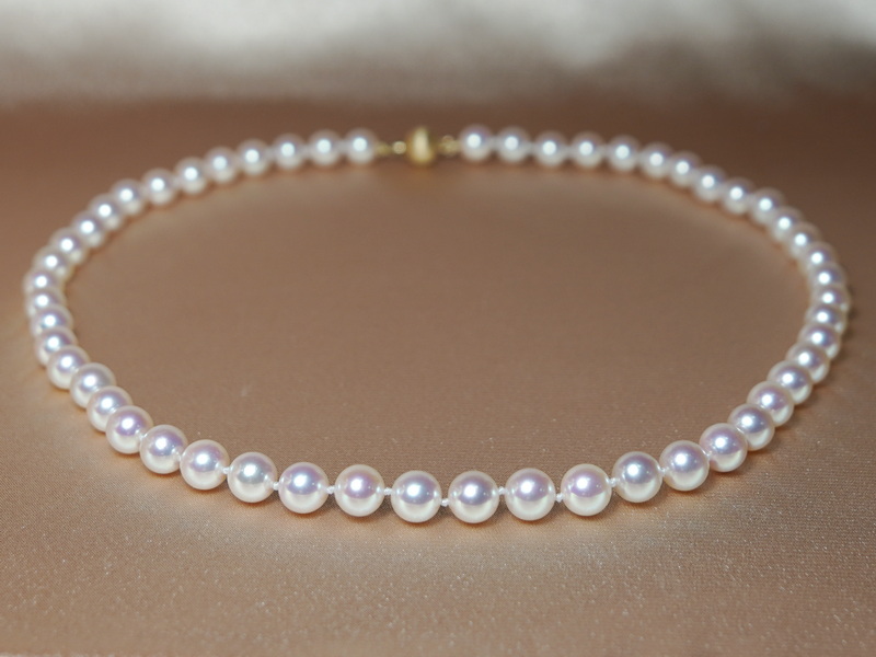 Perlový náhrdelník vyrobený z japonských akoya perál v kvalite Aurora HANADAMA veľkosti 7,5-8 mm a uzáveru zo zlata. Na výrobu náhrdelníka sú použité perly s očíslovaným certifikátom typu SS (S), ktorý vidíte na fotografii, vydaným inštitúciou Pearl Science Laboratory (najvyššie uznávaná medzinárodná inštitúcia na analýzu a hodnotenie perál). Každá perla prešla testovacím procesom, aby sa zabezpečilo, že spĺňa prísne normy potrebné na získanie stupňa kvality Aurora HANADAMA. Je to druhý najvyšší stupeň hodnotenia kvality – vyššia je už len kvalita TEN-NYO. Viac o kvalite japonských akoya perál Aurora HANADAMA a Aurora TEN-NYO sa dozviete tu.