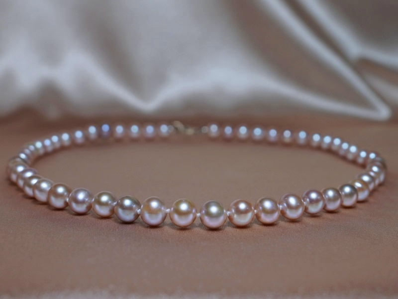 Náhrdelník je vyrobený z fialovoružových sladkovodných perál veľkosti 7,5 - 8,0 mm. Použité sú takmer okrúhle perly v kvalite AA+ (lesk AAA, tvar perál AA+, čistota povrchu AA+) s hladkým povrchom a veľmi vysokým leskom. Na povrchu perál sa ojedinele vyskytujú drobné nedokonalosti. Náhrdelník je viazaný na pevnej hodvábnej niti a medzi každou perlou sú uzlíky kvôli krajšiemu vzhľadu a bezpečnosti. Dĺžka náhrdelníka je cca 45 cm a ukončený je karabínou zo striebra rýdzosti 925/1000. Na požiadanie vyrobíme náhrdelník v iných dĺžkach, prípadne s iným uzáverom (zlatým) s primeraným zvýšením alebo znížením ceny. Šperky posielame v darčekovom balení spolu s certifikátom pravosti.