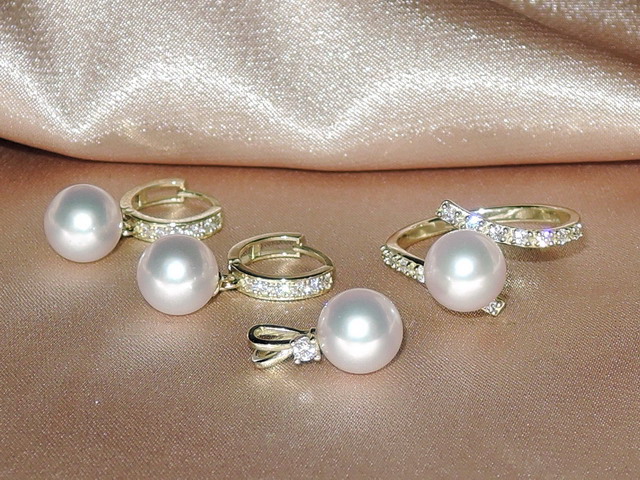 Šperky s perlami BC120YS-A sú vyrobené z kovaní zo 14 kt. žltého zlata kombinovaného so zirkónmi alebo briliantmi a bielych japonských morských akoya perál najvyššej kvality AAA. Popis jednotlivých šperkov nájdete tu: náušnice DS120YE-A, prívesok BC025YP-A, prsteň BC029YR-A. Jednotlivé šperky je možné zamieňať za iné druhy, prípadne voliť rôzne veľkosti perál pre rôzne šperky a tak tvoriť rôzne kombinácie vzhľadu aj ceny celého setu šperkov. O možnostiach, ktoré nie sú dané vo výbere sa informujte vopred. Šperky dostanete v darčekovej kazete s certifikátom pravosti a v rámci Česka a Slovenska vám ich doručíme zdarma.