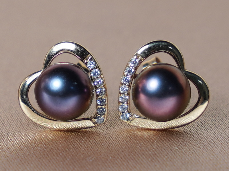 Zlaté napichovacie náušnice s čiernou sladkovodnou perlou WW013YE-FB v tvare srdiečka zo setu šperkov WW013YS-FB sú kombináciou kovania zo zlata, zirkónov a pravých sladkovodných perál najvyššej kvality AAA. Sladkovodné perly majú okrúhly tvar, hladký povrch a vysoký lesk. Veľkosť perly môžete zvoliť vo veľkosti medzi 6 až 7 mm. Na fotografii sú sladkovodné perly veľkosti 6,5 mm. Kovania náušníc sú zo žltého zlata rýdzosti 585/1000 (14kt.) a do každého z páru náušníc je vsadených 7 zirkónov. Veľkosť srdiečka je cca 11 x 11 mm a celková hmotnosť zlata páru náušníc je cca 1,25 gramu. Tento jemný dizajn je vhodným doplnkom nielen pre dámy, ale aj mladšie slečny. Sladkovodné perly v tomto krásnom decentnom prevedení sú vhodné na každodenné nosenie.