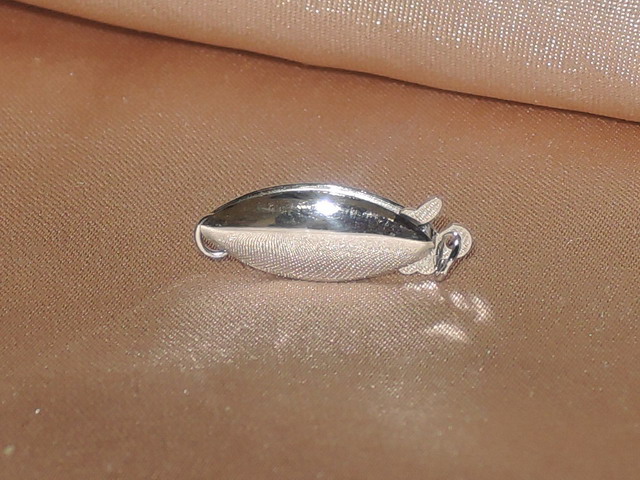 Ozdobný šperkový uzáver na perly oválneho tvaru zo 14 karátového bieleho zlata - rýdzosť 585/1000. Veľkosť uzáveru je cca 15 x 6,5 x 4 mm, celková dĺžka s jazýčkom cca 18 mm, hmotnosť 0,55 gramu. Uzáver je samostatne nepredajný. Je možné ho použiť len k náramkom a náhrdelníkom v našom e-shope (vymeniť za jednoduché uzávery zo striebra, alebo zlata so zodpovedajúcim doplatkom), prípadne použiť na váš náhrdelník, ktorý chcete nanovo preuzlíkovať. Uzáver bezpečne zacvakne pri uzavretí a nie je možné ho otvoriť bez stlačenia jazýčka. Odporúčame pre perly do veľkosti 8 mm.