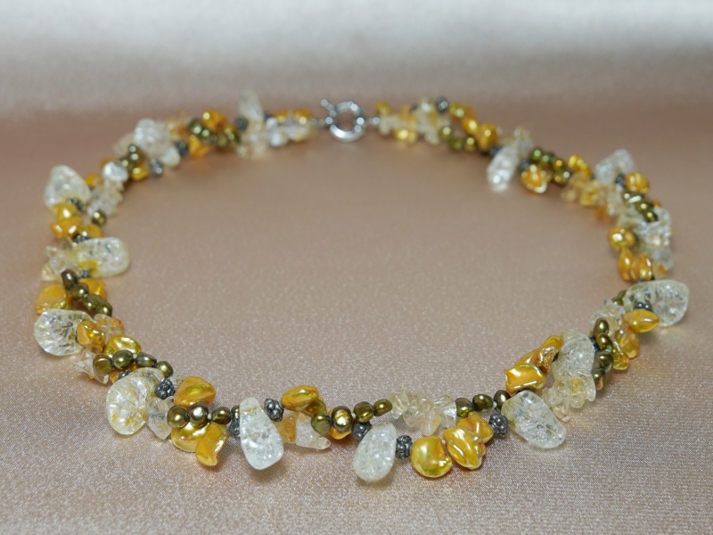 Nádherný viacfarebný náhrdelník vyrobený zo sladkovodných perál veľkosti 6-7 mm striedaných so žltými kryštálovými korálkami. Náhrdelník je ukončený pozláteným uzatváracím patentom. Dĺžka náhrdelníka je cca 432 mm. Šperky posielame v darčekovom balení.