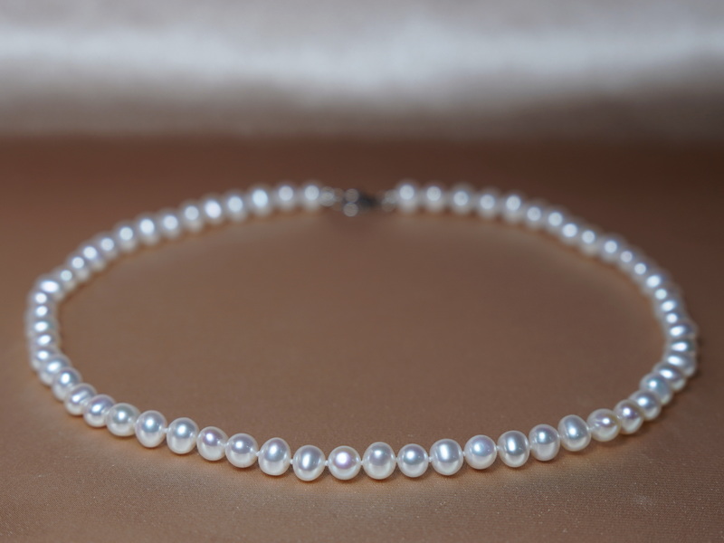 Perlový náhrdelník ORSN6575AA+wA je vyrobený z pravých bielych sladkovodných perál veľkosti 6,5 – 7,5 mm. Perly majú oválno-okrúhly tvar a kvalitu AA+ (tvar AA, povrch AAA, lesk AAA), vďaka čomu ponúkajú výborný pomer medzi vzhľadom a cenou.