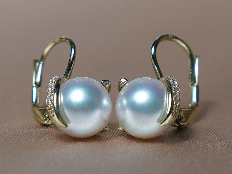 Zlaté náušnice morská akoya perla s briliantmi