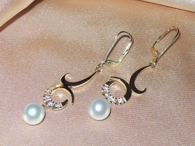 Luxusné náušnice zo setu šperkov BC03YS-W sú kombináciou kovania zo zlata, zirkónov alebo briliantov a pravých bielych juhomorských perál. Perly najvyššej kvality AAA majú okrúhly tvar, hladký povrch a vysoký lesk. Kovania náušníc sú vyrobené zo žltého zlata rýdzosti 585/1000 (14kt.) kombinované so zirkónmi alebo briliantmi veľkosti cca 2,25mm/0,05ct. Brilianty sú v kvalite VVS/G,H. Celková hmotnosť zlata páru náušníc s patentami je cca 5,7 gramu, hmotnosť skrutkovacích náušníc cca 4,8 gramu. Dĺžka skrutkovacích náušníc s perlou je cca 40 mm, celková dĺžka náušníc s patentom cca 65 mm. Tieto náušnice sú jeden z luxusných šperkov vlastného designu "BCstyle". Šperky splnia očakávania náročných klientov, ktorí hľadajú najvyššiu kvalitu v spojení s jedinečnosťou šperku, ktorý nemožno vidieť v ponukách iných predajní. Šperky posielame v darčekovom balení spolu s certifikátom pravosti a v rámci Česka a Slovenska máte dopravu zdarma.