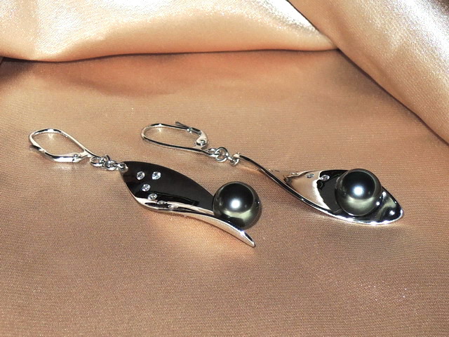 Luxusné náušnice zo setu šperkov BC02WS-T sú kombináciou kovania z bieleho zlata, zirkónov alebo briliantov a tahitských perál. Perly najvyššej kvality AAA môžu mať veľkosť od 9 do 12 mm, majú hladký povrch a veľmi vysoký lesk. Kovania náušníc sú vyrobené z bieleho zlata rýdzosti 585/1000 (14kt.) kombinované so zirkónmi alebo briliantmi veľkosti cca 2mm/0,033ct. Brilianty sú v kvalite VVS/G,H. Celková hmotnosť zlata páru náušníc je cca 11,0 gramu. Dĺžka kovania náušníc je cca 42 mm, celková dĺžka náušníc s patentom cca 68 mm. Tieto náušnice sú jeden z luxusných šperkov vlastného designu "BCstyle". Šperky splnia očakávania náročných klientov, ktorí hľadajú najvyššiu kvalitu v spojení s jedinečnosťou šperku, ktorý nemožno vidieť v ponukách iných predajní.Šperky posielame v darčekovom balení spolu s certifikátom pravosti a v rámci Česka a Slovenska máte dopravu zdarma.