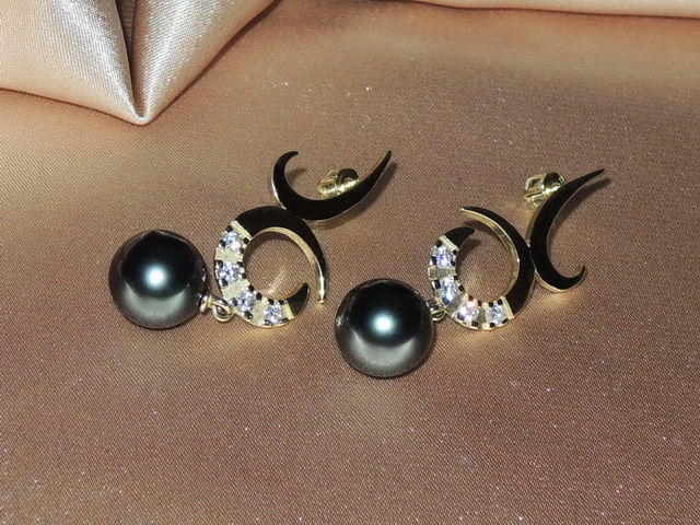 Luxusné náušnice zo setu šperkov BC03YS-T sú kombináciou kovania zo zlata, zirkónov alebo briliantov a tahitských perál. Je možné si vybrať náušnice s patentom alebo skrutkovacím balónikom. Perly najvyššej kvality AAA môžu mať veľkosť od 10 do 12 mm, majú hladký povrch a veľmi vysoký lesk. Kovania náušníc sú vyrobené zo žltého zlata rýdzosti 585/1000 (14kt.) kombinované so zirkónmi alebo briliantmi veľkosti cca 2,25mm/0,05ct. Brilianty sú v kvalite VVS/G,H. Celková hmotnosť zlata páru náušníc s patentami je cca 5,7 gramu, hmotnosť skrutkovacích náušníc cca 4,8 gramu. Dĺžka skrutkovacích náušníc s perlou je cca 40 mm, celková dĺžka náušníc s patentom cca 65 mm. Tieto náušnice sú jeden z luxusných šperkov vlastného designu "BCstyle". Šperky splnia očakávania náročných klientov, ktorí hľadajú najvyššiu kvalitu v spojení s jedinečnosťou šperku, ktorý nemožno vidieť v ponukách iných predajní. Šperky posielame v darčekovom balení spolu s certifikátom pravosti a v rámci Česka a Slovenska máte dopravu zdarma.