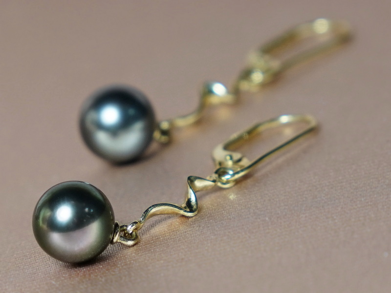 Zlaté náušnice 14K s tahitskými perlami AAA