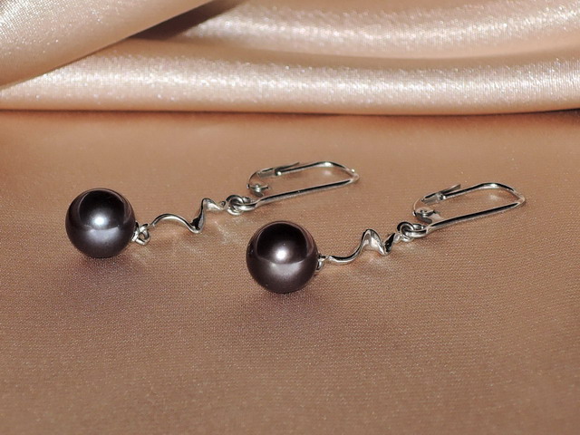 Výnimočné elegantné náušnice z čiernych sladkovodných perál kvality AAA. Použité sú kovania z bieleho zlata rýdzosti 585/1000 (14kt.) hmotnosti cca 2,05 gramu s uzatváracími patentami. Je možné si vybrať perly veľkosti 8mm, 9mm alebo 10mm. Tento šperk je vhodný k prívesku RwGPAAAbM s ktorým tvorí nádherný set. Na fotografii sú perly veľkosti 9,5mm.Šperky posielame v darčekovom balení spolu s certifikátom pravosti.