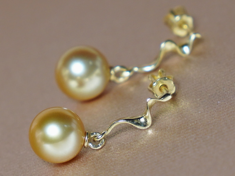 Náušnice SSPE100B zo setu šperkov SSGS100B sú vyrobené zo zlatožltých perál Južného Pacifiku a kovaní zo žltého zlata rýdzosti 585/1000 (14kt.).