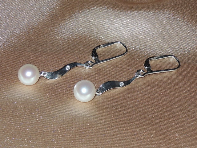 Luxusné náušnice zo setu šperkov BC04SS-W sú kombináciou kovania zo striebra, zirkónov a bielych sladkovodných perál. Perly môžu mať veľkosť 9 alebo 10 mm, sú kvality AAA s hladkým povrchom a vysokým leskom. Kovania náušníc sú zo striebra rýdzosti 925/1000 kombinované so zirkónmi veľkosti 2 mm. Kovania sú povrchovo upravené rhódiom a majú vzhľad bieleho zlata. Celková hmotnosť striebra páru náušníc je cca 2,4 gramu. Veľkosť kovaní náušníc je cca 23 mm, celková dĺžka náušníc s patentom a perlou cca 55mm. Tieto náušnice sú jeden z luxusných šperkov vlastného designu "BCstyle". Šperky posielame v darčekovom balení spolu s certifikátom pravosti.