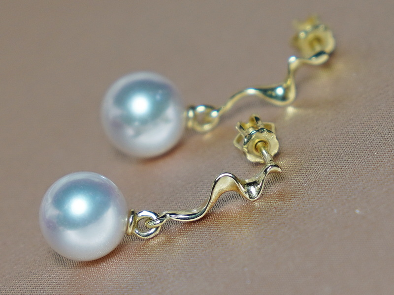 Zlaté náušnice 14K s japonskými akoya perlami