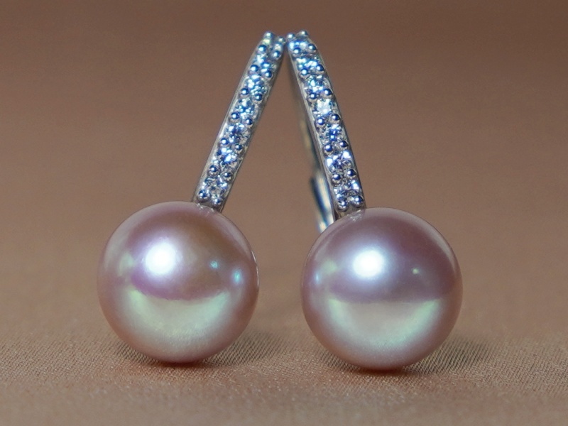 Perlové náušnice vyrobené z pravých fialovoružových sladkovodných perál a kovaní z bieleho zlata rýdzosti 585/1000 (14kt.).