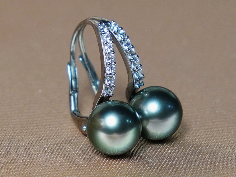 Zlaté náušnice BC021WE-T vyrobené z pravých tahitských perál a kovaní z bieleho zlata rýdzosti 585/1000 (14kt.). Perly najvyššej kvality AAA majú okrúhly tvar, hladký povrch a veľmi vysoký lesk. Kovania náušníc pozostávajú z patentov kombinovaných so zirkonmi alebo briliantmi. Brilianty sú v kvalite VVS/G,H. Každá náušnica má 7 ks kameňov veľkosti cca 1,5mm/0,014ct. Hmotnosť páru zlatých kovaní je cca 2,15 gramu, celková hmotnosť náušníc cca 5,2 gramu. Veľkosť perál môžete zvoliť od 8 do 12 mm. Na fotografii sú perly veľkosti 9 mm. Výška patentu je cca 18 mm - vhodnejší pre vyššie prepichnuté dierky. Na požiadanie k náušniciam doporučíme prívesok a prsteň ako kombináciu do setu šperkov. Šperky posielame v darčekovom balení spolu s certifikátom pravosti a v rámci Česka a Slovenska máte dopravu zdarma.