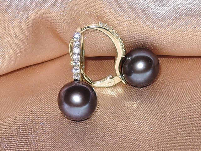 Perlové náušnice vyrobené z pravých čiernych sladkovodných perál a kovaní zo žltého zlata rýdzosti 585/1000 (14kt.). Perly kvality AAA majú okrúhly tvar, hladký povrch a veľmi vysoký lesk. Kovania náušníc pozostávajú z patentov kombinovaných so zirkónmi. Každá náušnica má 7 ks zirkónov veľkosti 1,5mm. Hmotnosť páru kovaní je cca 2,15 gramu. Veľkosť perál môžete zvoliť od 8 do 10 mm. Na fotografii sú perly veľkosti 9,5 mm. Výška patentu je cca 18 mm - vhodnejší pre vyššie prepichnuté dierky. Na požiadanie k náušniciam doporučíme prívesok a prsteň ako kombináciu do setu šperkov. Šperky posielame v darčekovom balení spolu s certifikátom pravosti a v rámci Česka a Slovenska máte dopravu zdarma.