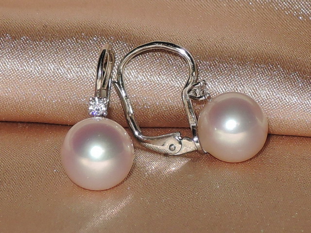 Perlové náušnice vyrobené z pravých fialovoružových sladkovodných perál a kovaní z bieleho zlata rýdzosti 585/1000 (14kt.). Perly kvality AAA majú okrúhly tvar, hladký povrch a veľmi vysoký lesk. Kovania náušníc pozostávajú z patentov kombinovaných so zirkónmi veľkosti 2,3 mm. Hmotnosť páru kovaní je cca 1,40 gramu. Veľkosť perál môžete zvoliť od 7 do 9 mm. Na fotografii sú perly veľkosti 9 mm. Na požiadanie k náušniciam doporučíme prívesok a prsteň ako kombináciu do setu šperkov. Šperky posielame v darčekovom balení spolu s certifikátom pravosti.