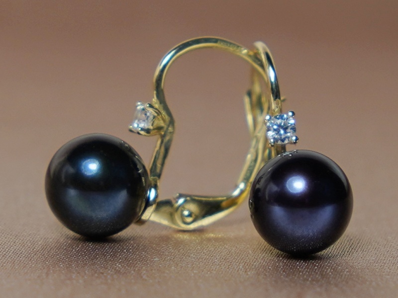 Perlové náušnice BC022YFE-B sú vyrobené z pravých čiernych sladkovodných perál a kovaní zo žltého zlata rýdzosti 585/1000 (14kt.).