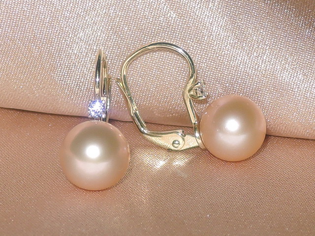 Perlové náušnice vyrobené z pravých broskyňovoružových sladkovodných perál a kovaní zo žltého zlata rýdzosti 585/1000 (14kt.). Perly kvality AAA majú okrúhly tvar, hladký povrch a veľmi vysoký lesk. Kovania náušníc pozostávajú z patentov kombinovaných so zirkónmi veľkosti 2,3 mm. Hmotnosť páru kovaní je cca 1,40 gramu. Veľkosť perál môžete zvoliť od 7 do 9 mm. Na fotografii sú perly veľkosti 9 mm. Na požiadanie k náušniciam doporučíme prívesok a prsteň ako kombináciu do setu šperkov. Šperky posielame v darčekovom balení spolu s certifikátom pravosti.