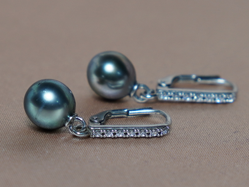 Perlové náušnice BC024SE-T vyrobené z pravých tahitských perál a kovaní zo striebra rýdzosti 925/1000 so zirkónmi.
