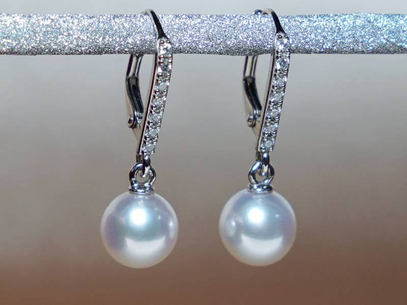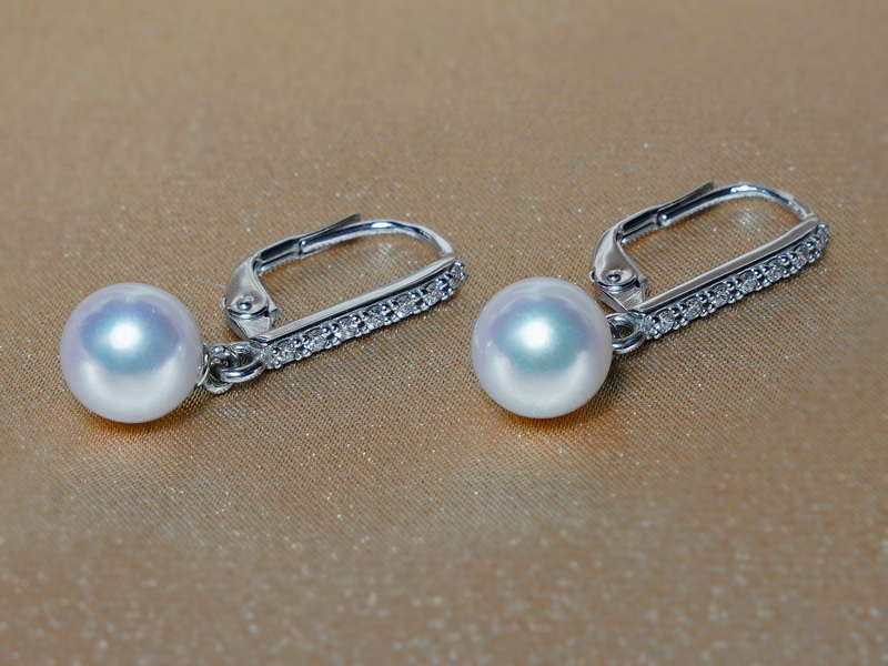 Perlové náušnice BC024WE-A vyrobené z pravých japonských bielych morských akoya perál a kovaní z bieleho zlata rýdzosti 585/1000 (14kt.). Perly najvyššej kvality AAA majú okrúhly tvar, hladký povrch a veľmi vysoký lesk. Kovania náušníc pozostávajú z patentov kombinovaných so zirkonmi alebo briliantmi. Brilianty sú v kvalite VVS/G,H. Každá náušnica má 7 ks kameňov veľkosti cca 1,5mm/0,015ct. Hmotnosť páru zlatých kovaní je cca 2,05 gramu, celková hmotnosť náušníc cca 3,6 gramu. Veľkosť perál môžete zvoliť od 7 do 9 mm. Na fotografii sú perly veľkosti 8 mm. Na požiadanie k náušniciam doporučíme prívesok a prsteň ako kombináciu do setu šperkov. Šperky posielame v darčekovom balení spolu s certifikátom pravosti a v rámci Česka a Slovenska máte dopravu zdarma.
