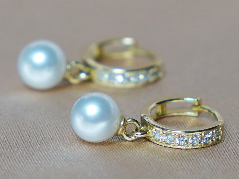 Zlaté náušnice DS120YE-A vyrobené z pravých japonských bielych morských akoya perál a kovaní zo žltého zlata rýdzosti 585/1000 (14kt.). Perly kvality AAA majú okrúhly tvar, hladký povrch a veľmi vysoký lesk. Kovania náušníc pozostávajú z patentov kombinovaných so zirkónmi alebo briliantmi. Brilianty sú v kvalite VVS/G,H. Každá náušnica má 6 ks kameňov veľkosti cca 1,4mm/0,013ct. Hmotnosť páru zlatých kovaní je cca 1,6 gramu. Priemer krúžku kovania je cca 12 mm. Veľkosť perál môžete zvoliť od 6 do 9 mm. Na fotografii sú akoya perly veľkosti 6 mm. Na požiadanie k zlatým náušniciam doporučíme prívesok s perlou a prsteň s perlou ako kombináciu do setu šperkov. Zlaté perlové šperky posielame v darčekovom balení spolu s certifikátom pravosti a v rámci Česka a Slovenska máte dopravu zdarma.