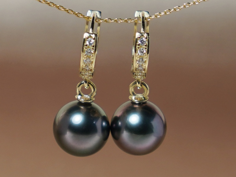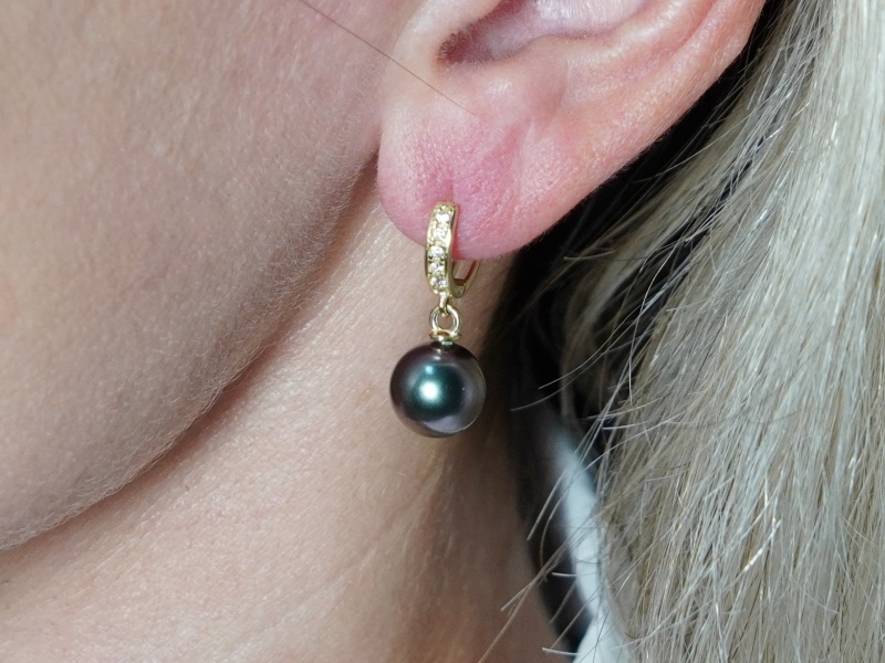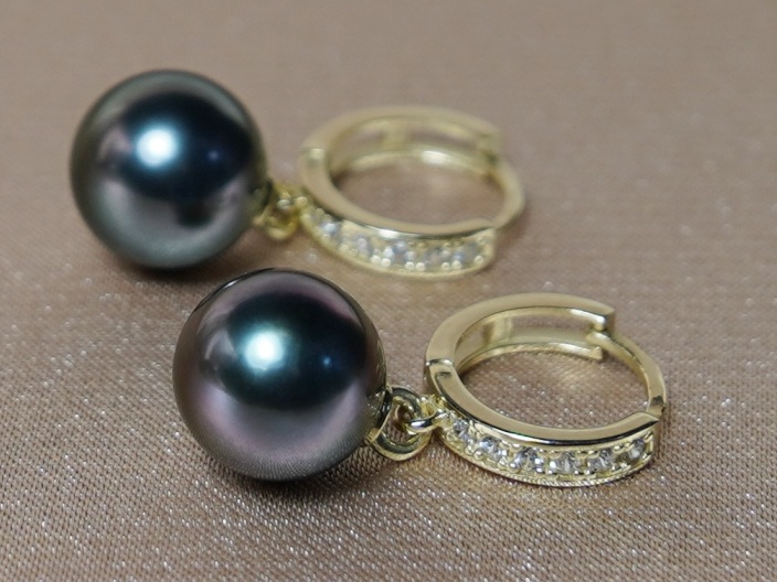 Perlové náušnice z pravých tahitských perál a žltého zlata 14kt.