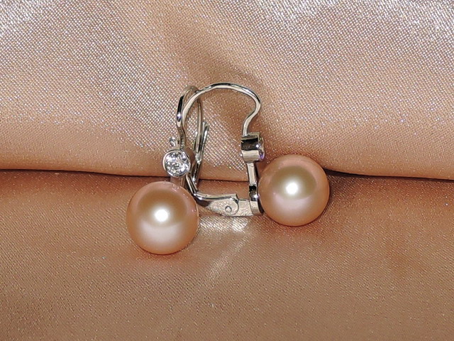 Perlové náušnice vyrobené z pravých fialovoružových sladkovodných perál a kovaní z bieleho zlata rýdzosti 585/1000 (14kt.). Perly kvality AAA majú okrúhly tvar, hladký povrch a veľmi vysoký lesk. Kovania náušníc pozostávajú z patentov kombinovaných so zirkónmi. Veľlkosť zirkónov je 3 mm. Hmotnosť páru zlatých kovaní je cca 1,9 gramu. Veľkosť perál môžete zvoliť od 8 do 9 mm. Na fotografii sú perly veľkosti 8 mm. Na požiadanie k náušniciam doporučíme prívesok a prsteň ako kombináciu do setu šperkov. Šperky posielame v darčekovom balení spolu s certifikátom pravosti.