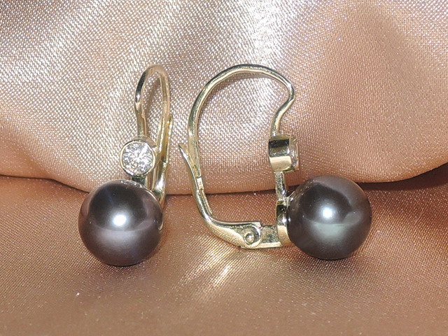 Perlové náušnice vyrobené z pravých čiernych sladkovodných perál a kovaní zo žltého zlata rýdzosti 585/1000 (14kt.). Perly kvality AAA majú okrúhly tvar, hladký povrch a veľmi vysoký lesk. Kovania náušníc pozostávajú z patentov kombinovaných so zirkónmi. Veľlkosť zirkónov je 3 mm. Hmotnosť páru zlatých kovaní je cca 1,9 gramu. Veľkosť perál môžete zvoliť od 8 do 9 mm. Na fotografii sú perly veľkosti 8 mm. Na požiadanie k náušniciam doporučíme prívesok a prsteň ako kombináciu do setu šperkov. Šperky posielame v darčekovom balení spolu s certifikátom pravosti.