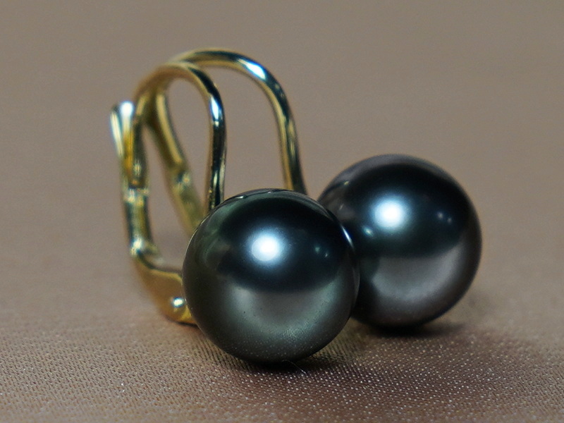 Zlaté náušnice 14K s čiernymi tahitskými perlami AAA