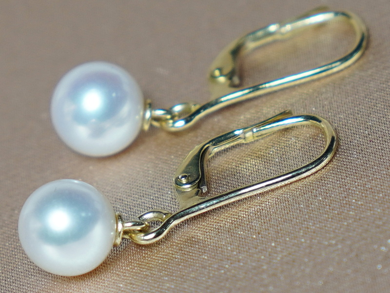 Perly kvality AAA majú okrúhly tvar, hladký povrch a vysoký lesk. Použité sú patenty zo žltého zlata rýdzosti 585/1000 (14kt.) hmotnosti 1,6 gramu. Je možné si vybrať perly veľkosti 8-10 mm. Na fotografiách sú perly veľkosti 9 mm.