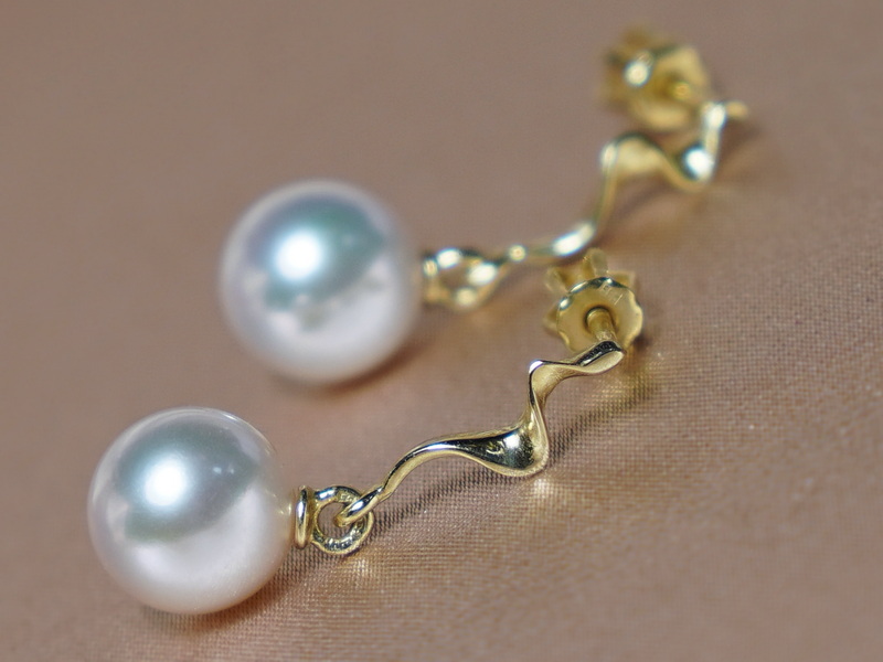 Perly majú hladký povrch a veľmi vysoký lesk. Je možné vybrať si perlu s veľkosťou 8, 9 alebo 10mm. Hmotnosť zlata je cca 1,5 gramu. Tento šperk je vhodný k prívesku RGPAAAwM, s ktorým tvorí nádherný set. Na fotografiách sú perly veľkosti 9 mm.