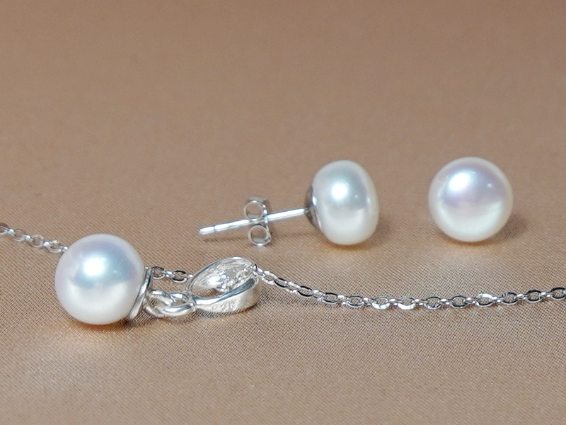 Nádherný jednoduchý a zároveň elegantný set šperkov FPS001wT pozostáva z náušníc a prívesku s retiazkou. Šperky sú vyrobené z bielych sladkovodných perál a strieborných kovaní rýdzosti 925/1000. Napichovacie náušnice sú vyrobené z čiastočne sploštených perál s povrchovou kvalitou AAA. Perla prívesku kvality AAA je guľatá, má vysoký lesk a hladký povrch. Ak neviete, akú veľkosť perál vybrať, pozrite tu.
