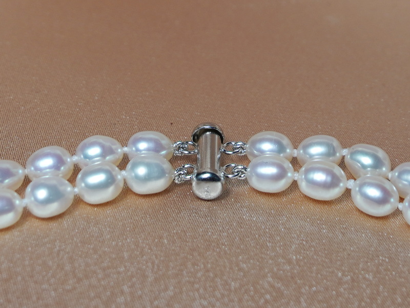 Dvojradový perlový náhrdelník DOSN06AA+wJ je vyrobený z dvoch radov bielych sladkovodných podlhovastých perál veľkosti cca 6 x 8 mm v kvalite AA+ s hladkým povrchom a veľmi vysokým leskom. Na povrchu perál sa môžu vyskytnúť drobné nedokonalosti. Náhrdelník je viazaný na pevnej hodvábnej niti a medzi každou perlou sú uzlíky kvôli krajšiemu vzhľadu a bezpečnosti. Náhrdelník má dĺžku cca 47 + 52 cm a je ukončený uzáverom zo striebra rýdzosti 925/1000 o hmotnosti 1,70 g. Na požiadanie vyrobíme náhrdelník v iných dĺžkach s primeraným zvýšením, alebo znížením ceny. Na požiadanie k náhrdelníku odporučíme náušnice a náramok z rovnakých perál. Šperky posielame v darčekovom balení spolu s certifikátom pravosti.