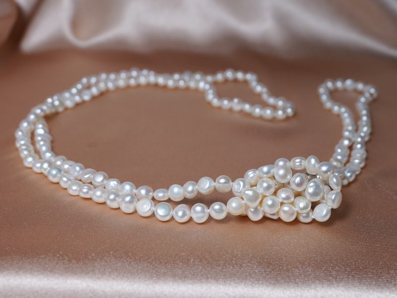 Dlhý perlový náhrdelník DPN130A+wW vyrobený z bielych sladkovodných perál nepravideľného tvaru kvality A (tvar:A, povrch:A, lesk:AA) veľkosti cca 7 - 8 mm. Dĺžka náhrdelníka je 130 cm, je možné ho nosiť viacerými spôsobmi a tak ho prispôsobiť rôznym príležitostiam a rôznemu oblečeniu. Perlový náhrdelník je viazaný na pevnej hodvábnej niti s uzlíkom za každou perlou. Perlové šperky posielame v darčekovom balení.
