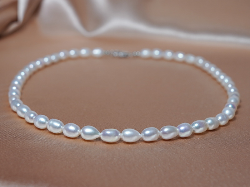 Jednoradový perlový náhrdelník FPN7080wG vyrobený z bielych podlhovastých sladkovodných perál veľkosti cca 7 x 9 mm. Náhrdelník nie je uzlíkovaný. Náhrdelník je ukončený uzáverom z bižutérneho kovu. Perlový náhrdelník je vhodný na bežné každodenné nosenie aj v kombinácii s náušnicami PE0126E. Šperky posielame v darčekovom balení.