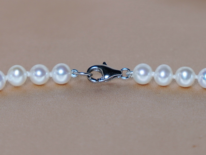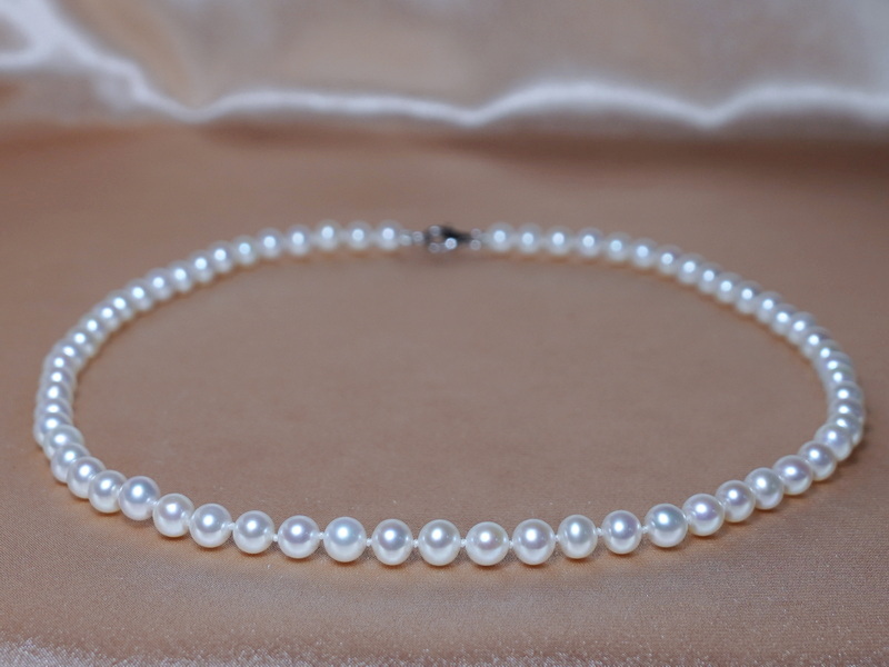 Perlový náhrdelník NRSN6065AAAwA vyrobený z bielych sladkovodných perál (riečne perly) veľkosti 6 - 6,5 mm. Použité sú takmer okrúhle perly v kvalite AAA  (tvar AA+, lesk  AAA, čistota povrchu AAA).