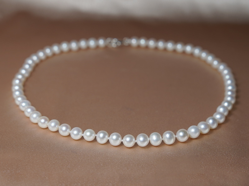 Perlový náhrdelník NRSN7075AA+wJ vyrobený z bielych sladkovodných perál (riečne perly) veľkosti 7 - 7,5 mm. Použité sú takmer okrúhle perly v kvalite AA+ (tvar AA+, lesk AA+, čistota povrchu AA+). Náhrdelník je viazaný na pevnej hodvábnej niti a medzi každou perlou sú naviazané uzlíky kvôli krajšiemu vzhľadu a bezpečnosti. Dĺžka náhrdelníka je 45 cm a ukončený je uzáverom zo striebra rýdzosti 925/1000. Fotografia je autentická. Na požiadanie vyrobíme perlový náhrdelník v iných dĺžkach, prípadne s iným uzáverom s primeraným zvýšením alebo znížením ceny. K náhrdelníku môžeme vyrobiť perlový náramok a odporučiť perlové náušnice, aby tvorili nádherný set šperkov. Perlové šperky následne posielame v darčekovom balení s certifikátom pravosti a dopravu v rámci SR neplatíte.