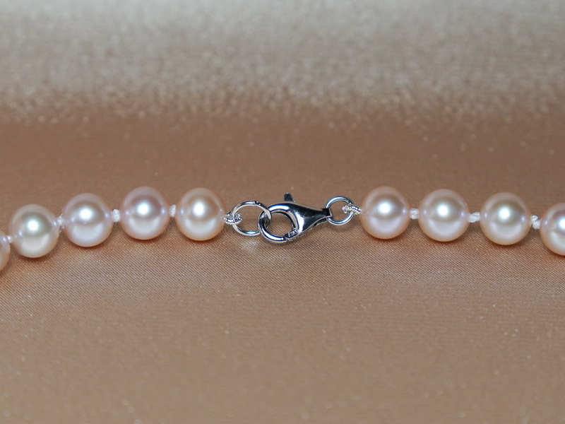 Náhrdelník v dĺžke 45 cm je viazaný na pevnej hodvábnej niti a medzi každou perlou sú naviazané uzlíky kvôli krajšiemu vzhľadu a bezpečnosti. Náhrdelník je ukončený uzáverom zo striebra rýdzosti 925/1000. Na požiadanie vyrobíme perlový náhrdelník v iných dĺžkach, prípadne s iným uzáverom s primeraným zvýšením alebo znížením ceny. K náhrdelníku môžeme vyrobiť perlový náramok a odporučiť perlové náušnice, aby tvorili nádherný set šperkov.