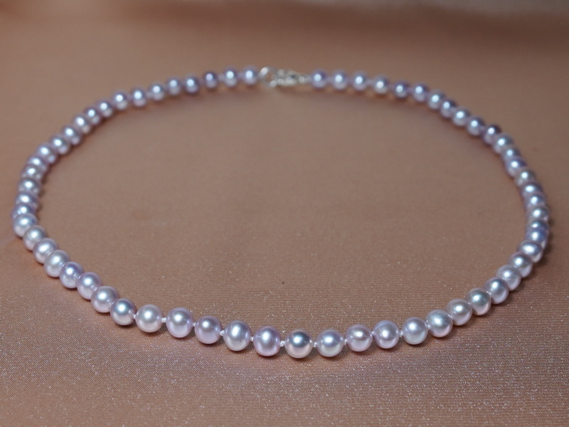 Perlový náhrdelník ORSN6065AA+lZ je vyrobený z fialovoružových riečnych perál veľkosti 6 - 6,5 mm okrúhlo-oválneho tvaru v kvalite AA+ (tvar AA, čistota povrchu AA+, lesk AA+). Náhrdelník je viazaný na pevnej hodvábnej niti a medzi každou perlou sú uzlíky kvôli krajšiemu vzhľadu a bezpečnosti. Perlový náhrdelník je ukončený karabínou zo striebra rýdzosti 925/1000. Môžete vybrať náhrdelník v dĺžke 40 cm a 45 cm. Na požiadanie vyrobíme náhrdelník v iných dĺžkach, prípadne s iným uzáverom s primeraným zvýšením alebo znížením ceny. K náhrdelníku môžeme vyrobiť perlový náramok a odporučiť perlové náušnice, aby tvorili nádherný set šperkov. Perlové šperky následne posielame v darčekovom balení s certifikátom pravosti a dopravu neplatíte.