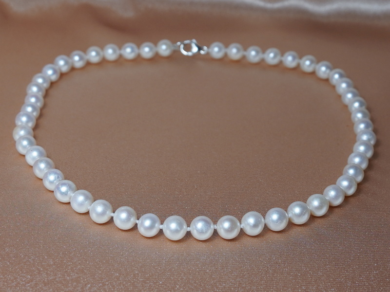 Perlový náhrdelník RSN8085AAwJ je vyrobený z bielych sladkovodných perál veľkosti 8 - 8,5 mm. Použité sú okrúhle perly v kvalite AA (tvar AAA, lesk AA, čistota povrchu A+). Náhrdelník je viazaný na pevnej hodvábnej niti a medzi každou perlou sú uzlíky kvôli krajšiemu vzhľadu a bezpečnosti. Dĺžka náhrdelníka je cca 45 cm a ukončený je uzáverom zo striebra rýdzosti 925/1000. Na požiadanie vyrobíme perlový náhrdelník v iných dĺžkach, prípadne s iným uzáverom s primeraným zvýšením alebo znížením ceny. Náhrdelník z pravých perál posielame v darčekovom balení a s certifikátom pravosti.