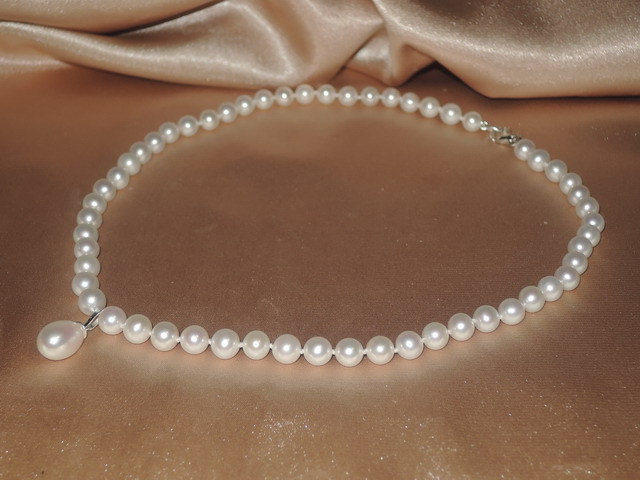 Náhrdelník zo setu RSNDSET7580AAAwQ je vyrobený z bielych sladkovodných perál veľkosti 7,5 - 8 mm a jednej perly tvaru slzy veľkosti cca 10 x 13 mm. Použité sú okrúhle perly v kvalite AAA. Náhrdelník je viazaný na pevnej hodvábnej niti a medzi každou perlou sú uzlíky kvôli krajšiemu vzhľadu a bezpečnosti. Dĺžka náhrdelníka je cca 45 cm a ukončený je uzáverom zo striebra rýdzosti 925/1000. Na požiadanie vyrobíme náhrdelník v iných dĺžkach, prípadne s iným uzáverom (zlatý) s primeraným zvýšením alebo znížením ceny. K náhrdelníku je možné vyrobiť aj náramok a náušnice z rovnakých perál.Šperky posielame v darčekovom balení spolu s certifikátom pravosti a v rámci Česka a Slovenska máte dopravu zdarma.
