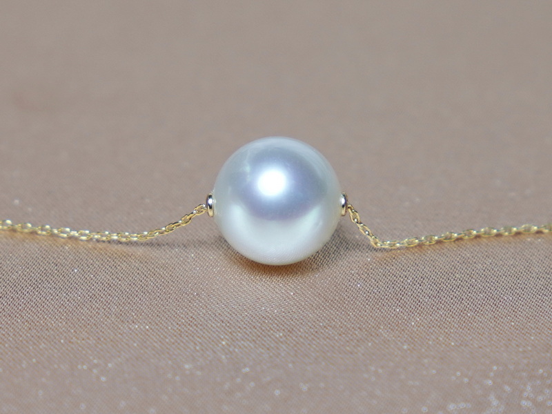 Dominantou náhrdelníka je biela juhomorská perla s priemerom od 9 do 12 mm, ktorú si môžete vybrať podľa preferencií. Na obrázku je perla s veľkosťou 9,5 mm. Perla má hodnotenie kvality AAA: