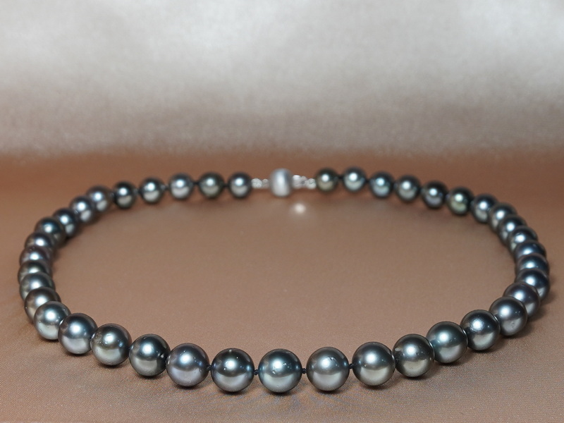 Tahitské perly sú postupne usporiadané od 8,5 mm pri uzávere až po 10,7 mm v strede náhrdelníka. Každá perla je ručne naviazaná na pevnej hodvábnej niti, pričom uzlíky medzi perlami chránia jednotlivé perly pred vzájomným trením a rozkotúľaním pri náhodnom roztrhnutí.