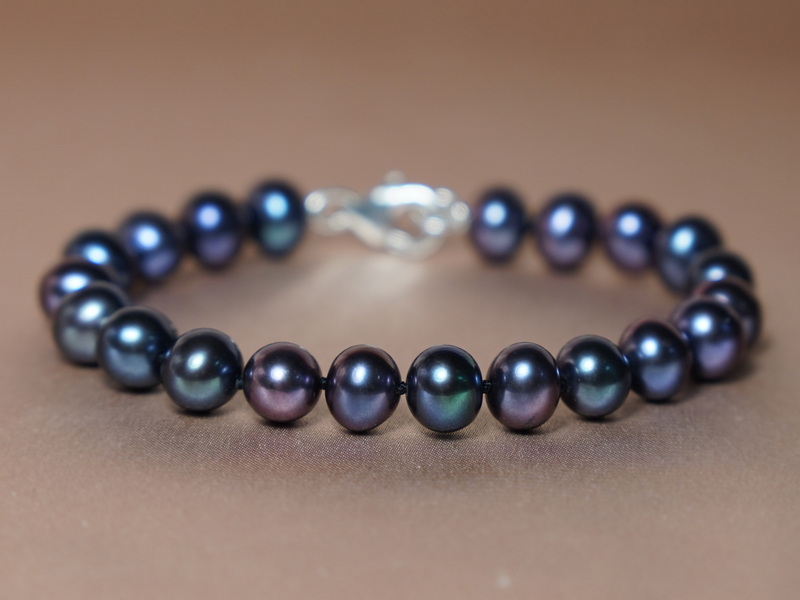 Perlový náramok NRSB7585AAAbAE je elegantný šperk z čiernych sladkovodných perál s veľkosťou 7,5 – 8,5 mm, doplnený kvalitným uzáverom zo striebra.